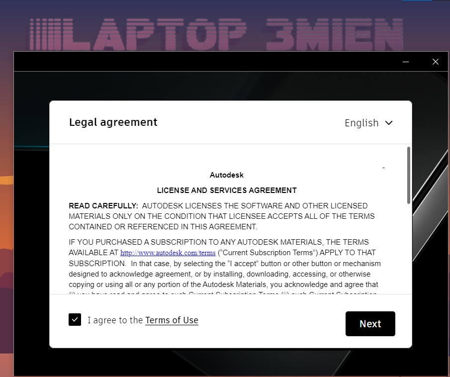 Bước 4: Tick vào “ I agree to the Terms of Use “ và nhấn Next.