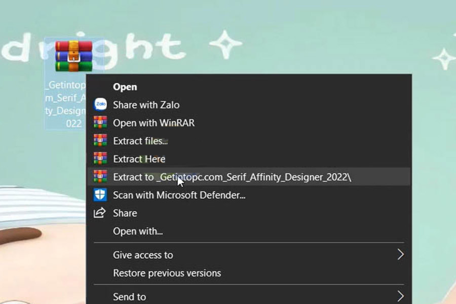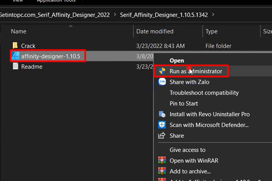 Bước 1: Giải nén phần mềm Affinity Designer 2022