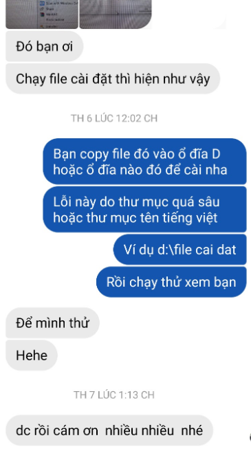 Đây là lỗi do bạn lưu file cài đặt trong thư mục tên tiếng việt có dấu hoặc thư mục cài đặt có đường dẫn quá sâu. Ví dụ: D:\thu muc 1\thu muc 2\thu muc 3\thu muc 4\thu muc 5\file cài đặt. Để khắc phục bạn chỉ cần copy file cài đặt đến thư mục ít sâu hơn là được, ví dụ D:\thu muc 1\file cài đặt hay đơn giản là D:\file cài đặt. Rồi mở lại.