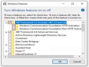 Bước 1: Cập nhật NET Framework 3.5 và 4.0 (nếu chưa có) bằng cách đi theo đường dẫn Control Panel\Programs\Programs and Features và chọn Turn Windows features on or off. Tích như hình dưới đây