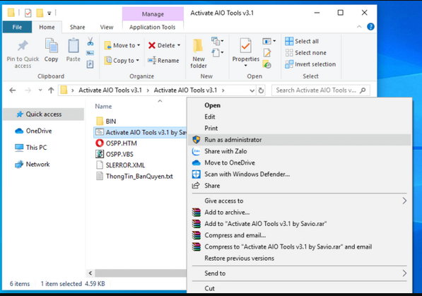 1. Phải chạy file Activate AIO Tools by Savio.cmd với tư cách quản trị viên (Run as Administrator).