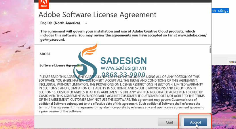 Bước 5: Chọn Accept cài đặt Adobe Audition 2017.