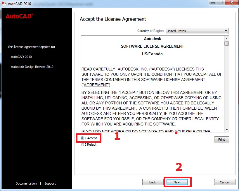 Bước 3: Nhấn I Accept chấp nhận điều khoản Autodesk và Next