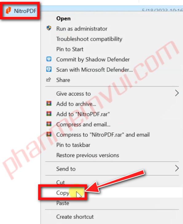 Sao chép tệp NitroPDF có trong thư mục Crack bằng cách nhấp chuột phải vào file đó rồi chọn Copy.