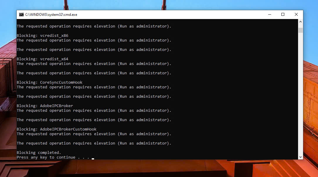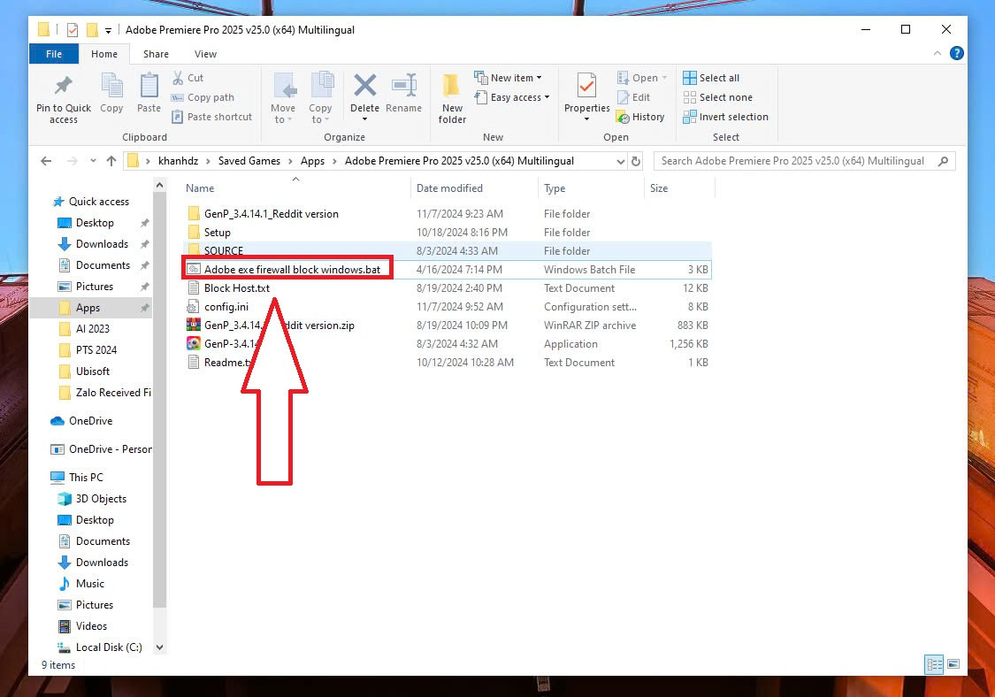 Bước 6: Chạy tệp có tên“Adobe exe firewall block windows.bat” như bên dưới.