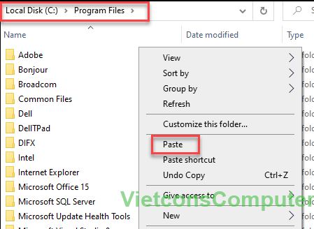 Truy cập vào ổ đĩa C -> Program File -> click phải -> Paste