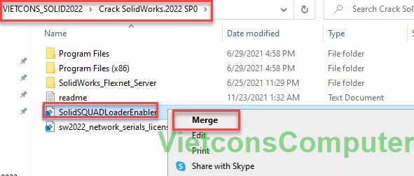 Quay lại thư mục crack, click phải file SolidSQUADLoaderEnabler -> Merge